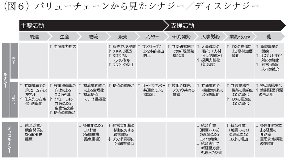 特に、市場浸透の観点については、ビジネスモデルを支えるバリューチェーンの要素に分解し(図6参照)、シナジーやディスシナジーの具体的な意見が出しやすい枠組みで検討を進めた。